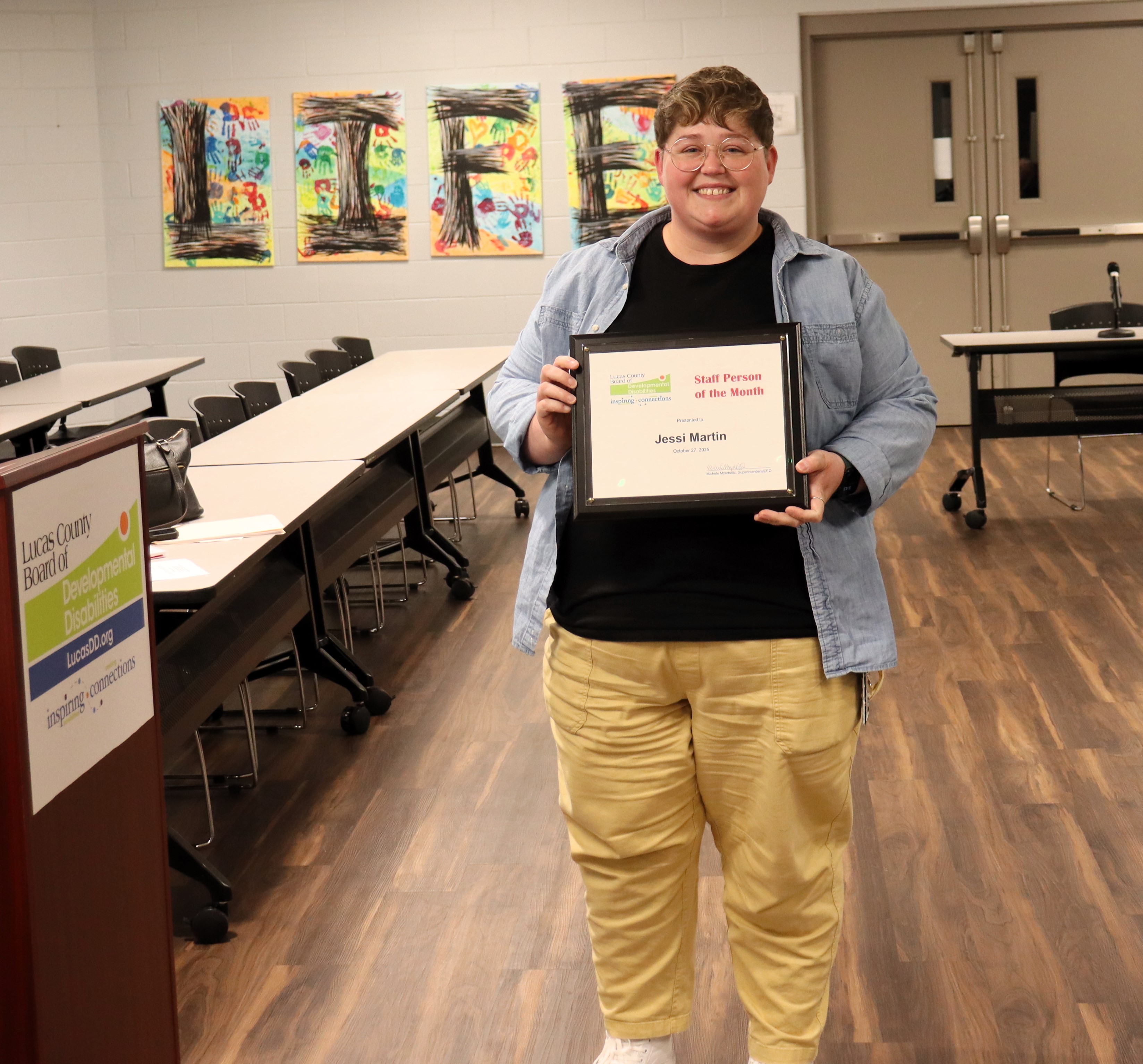 At its monthly meeting on Oct. 27, the Board of Directors of the Lucas County Board of Developmental Disabilities recognized Jessi Martin, a Service & Support Specialist, as the Staff Person of the Month. Erin Thompson, of the Social Security Administration, received the monthly Special Recognition Award.