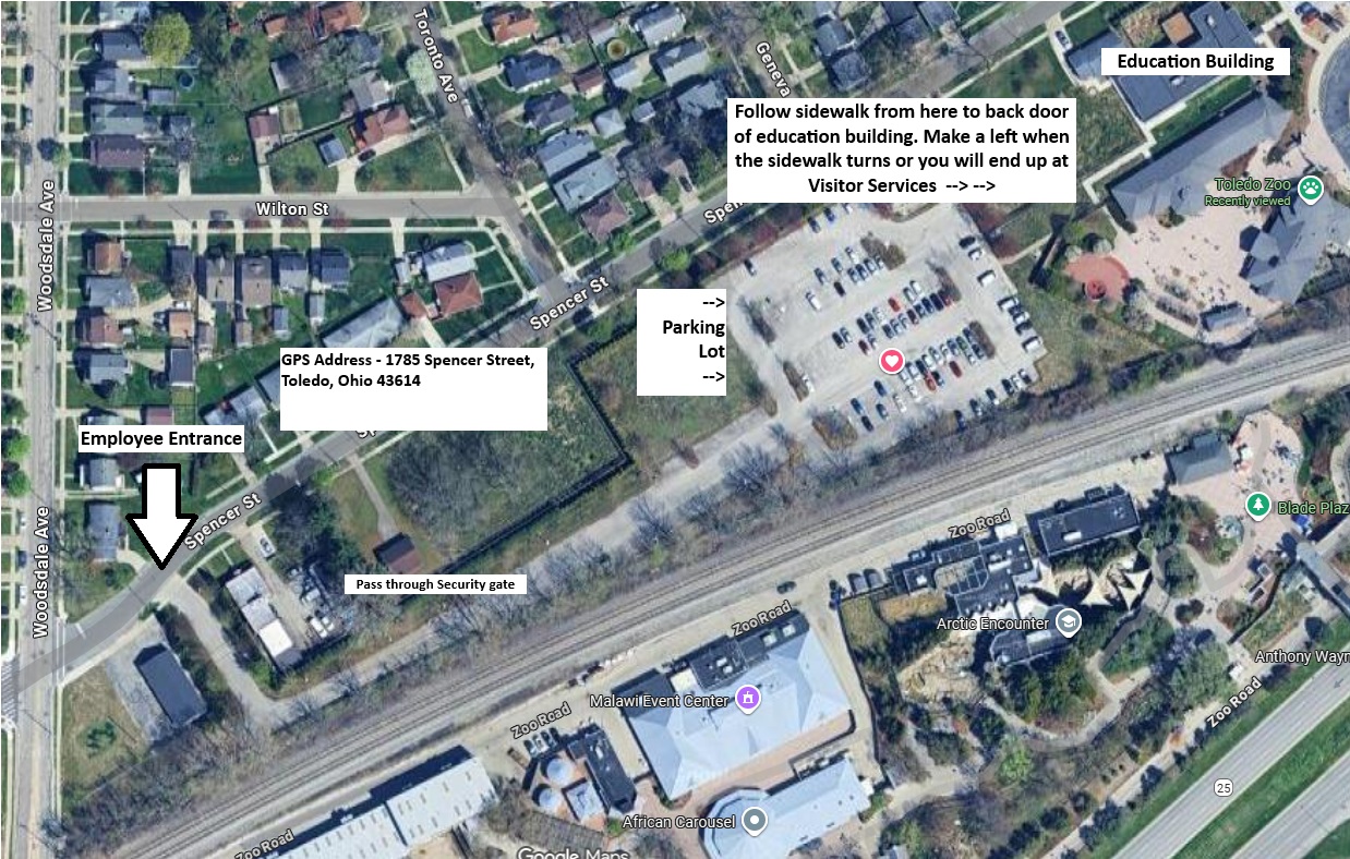DIRECTIONS: When you turn onto Spencer Street, look for a green sign on a pole that says “Employee Entrance”—that’s the drive you want. Follow the drive around through the security gate and park in the lot.