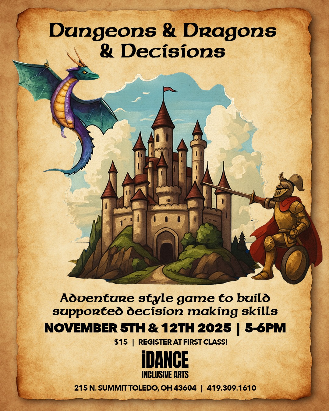 In this two-part class, participants will dive into a Dungeons & Dragonsโ€“style roleplaying game, but with a twist. Every challenge, character choice, and quest is designed to help players practice and build supported decision-making skills that translate directly to real life.