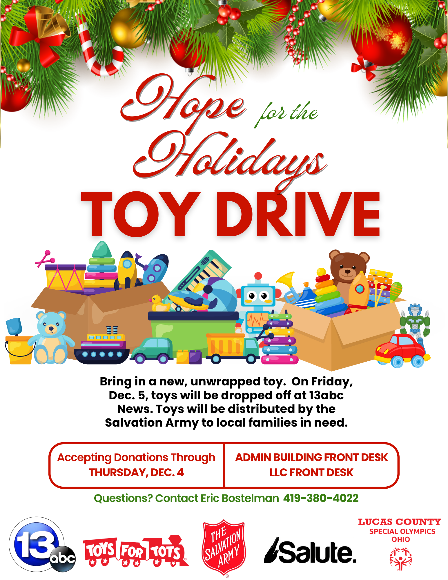 You can help make a difference by bringing a new, unwrapped toy to the LLC or Admin Front Desk by Dec. 4. All donations will be personally delivered to Channel 13 ABC on Dec. 5.