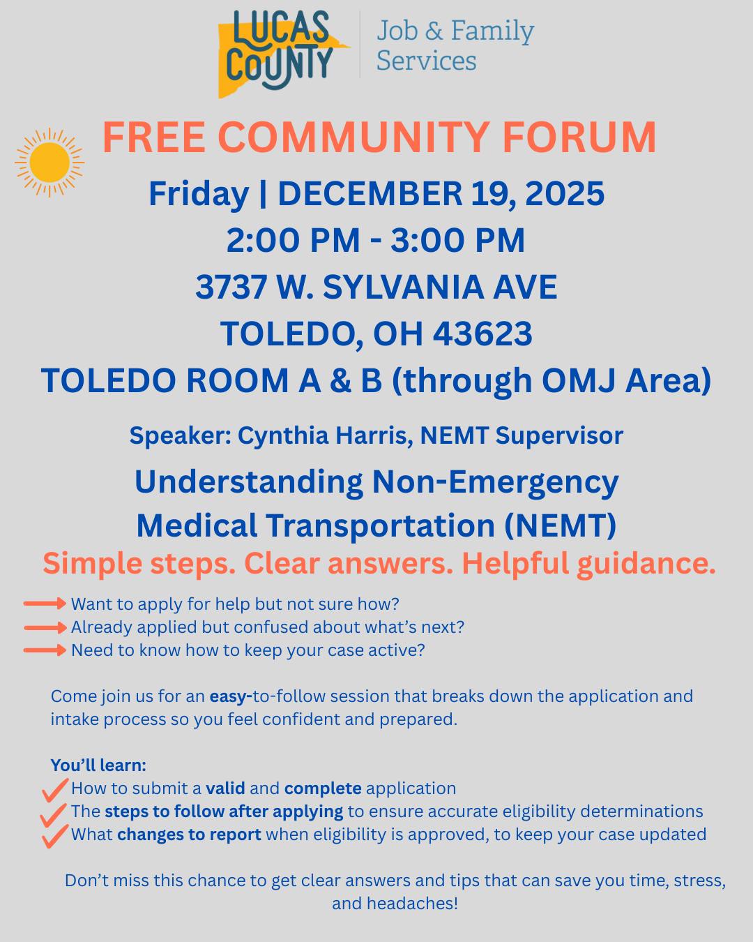 They are inviting anyone with questions or who wants to learn more to attend an informational forum on the Non-Emergency Medical Transportation (NEMT) Program.