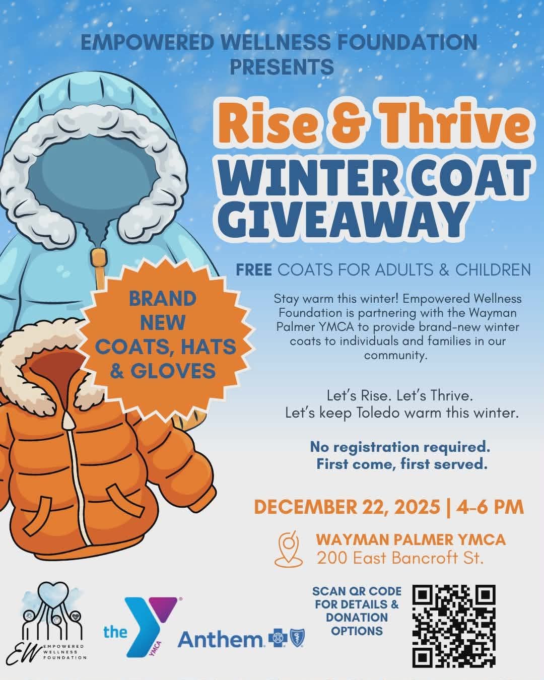 Empowered Wellness Foundation has partnered with Wayman Palmer YMCA to privde brand-new winter coats to individuals and families in our community. No registration required - first come, first served.
