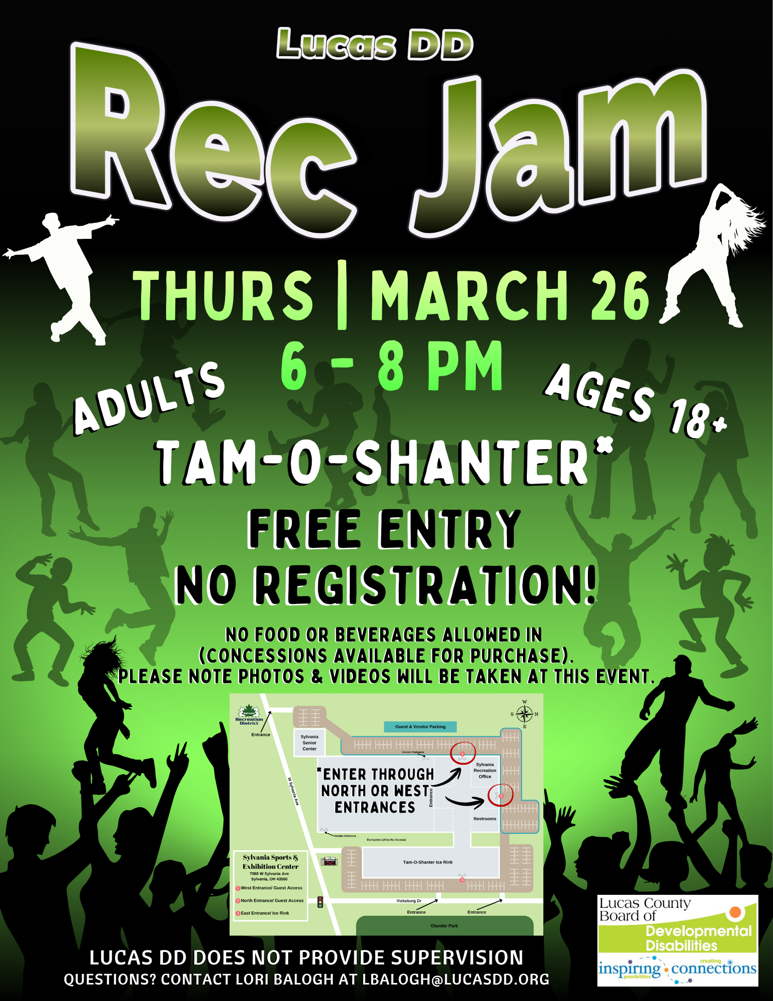 The lights are low, the music is pumping, and the dance floor is yours... move, groove, and let the energy take over! Rec Jam is your chance to celebrate, connect, and let loose in a fun, inclusive space for adults 18 and older. Bring your boldest moves, your brightest style, and your biggest party energy- this night is all about fun, freedom, and full-on hype.