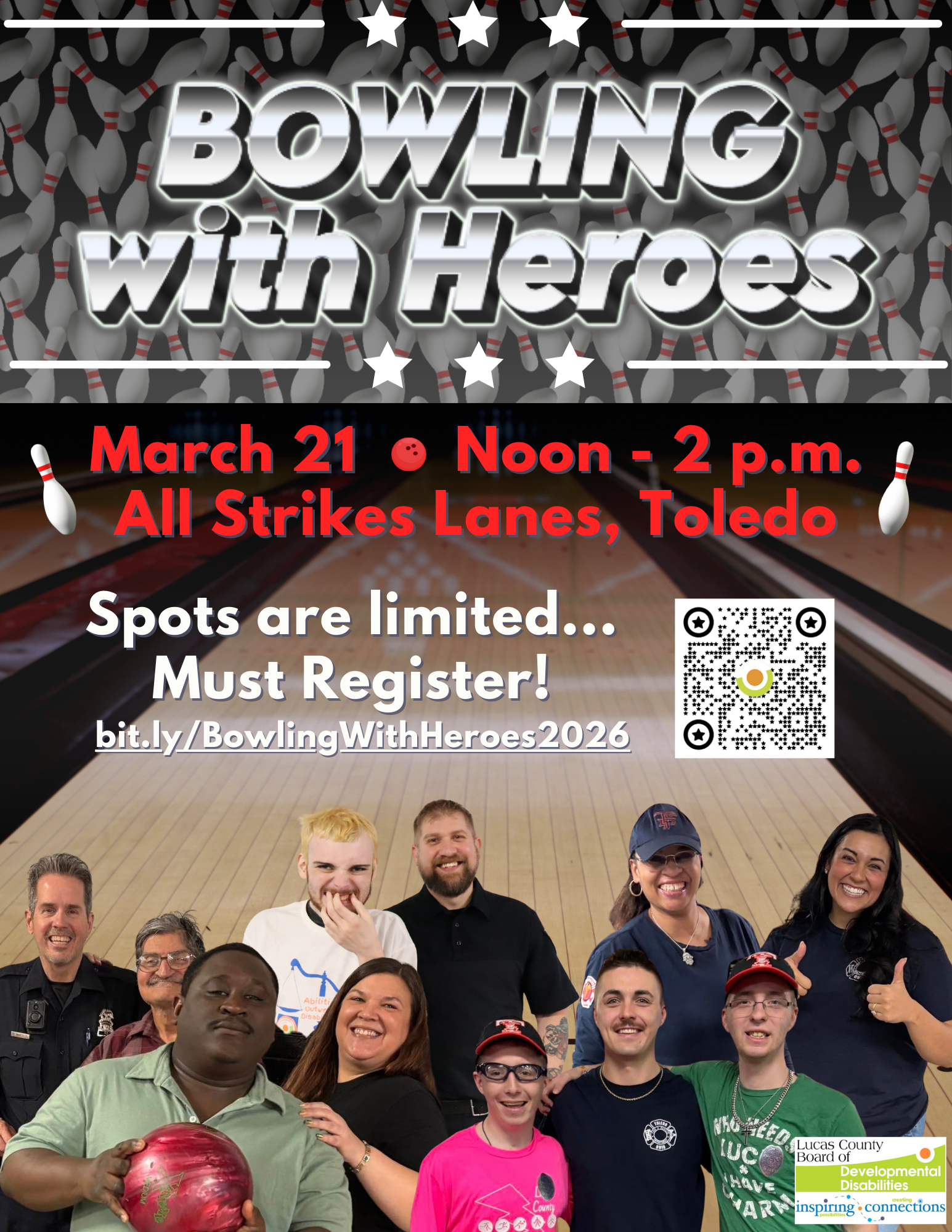 Join us for a fun-filled day at the bowling alley in honor of Developmental Disabilities Awareness Month! Individuals served by the Board will have the chance to bowl alongside local heroes- police officers, firefighters, and community leaders- for a day of strikes, smiles, and community connections.