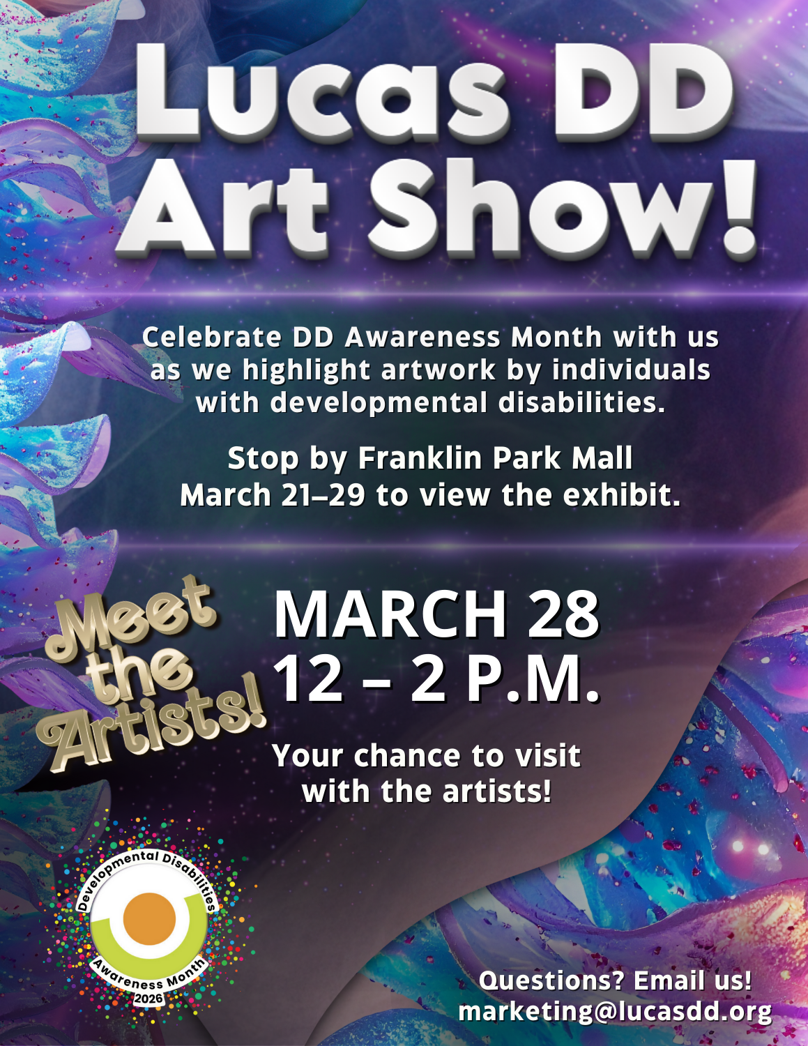 In celebration of Developmental Disabilities Awareness Month, Lucas DD is proud to present a public art show featuring artwork by individuals with developmental disabilities, on display at Franklin Park Mall from March 21–29.